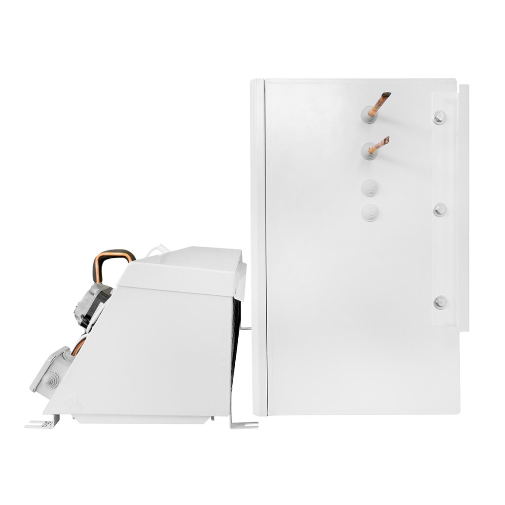 - Теплообменник на основе медных труб и алюминиевых ребер повышает теплоотдачу и устойчивость к перепадам температур.